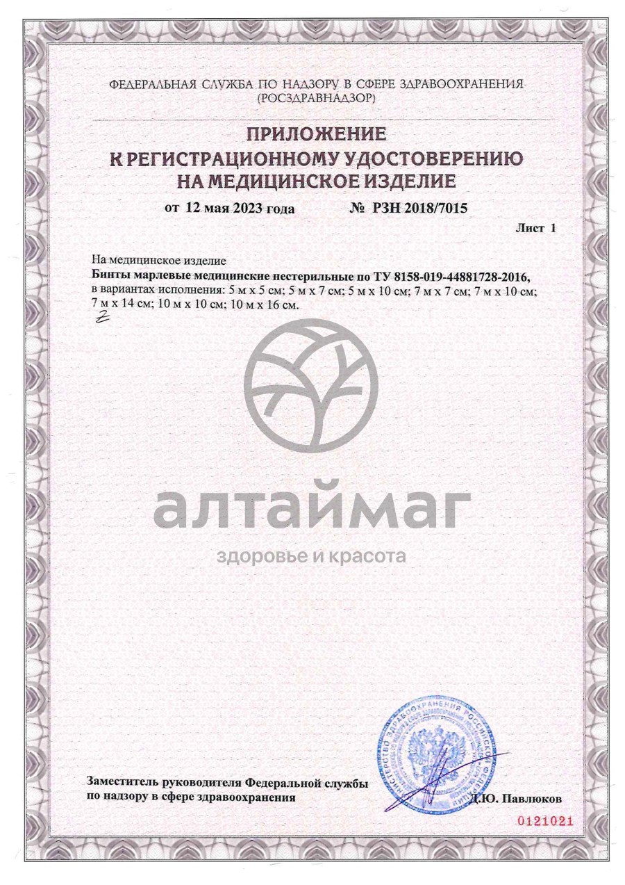 Бинт марлевый медицинский нестерильный предназначен для фиксации, наложения, изготовления операционно-перевязочных средств. Бинт белого цвета, без швов и с обрезанной кромкой.