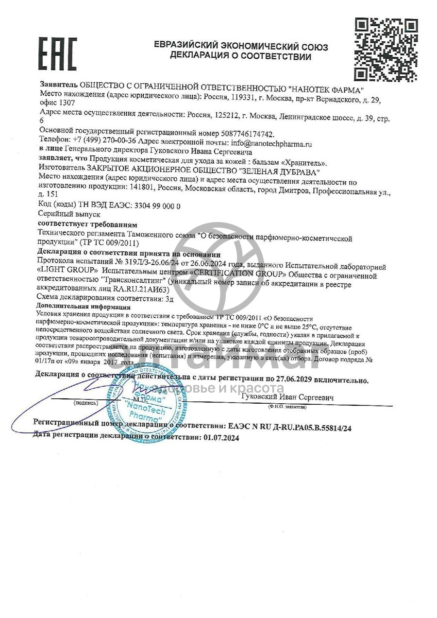 - В карточке товара находится: описание, инструкция по применению, отзывы и сертификаты.