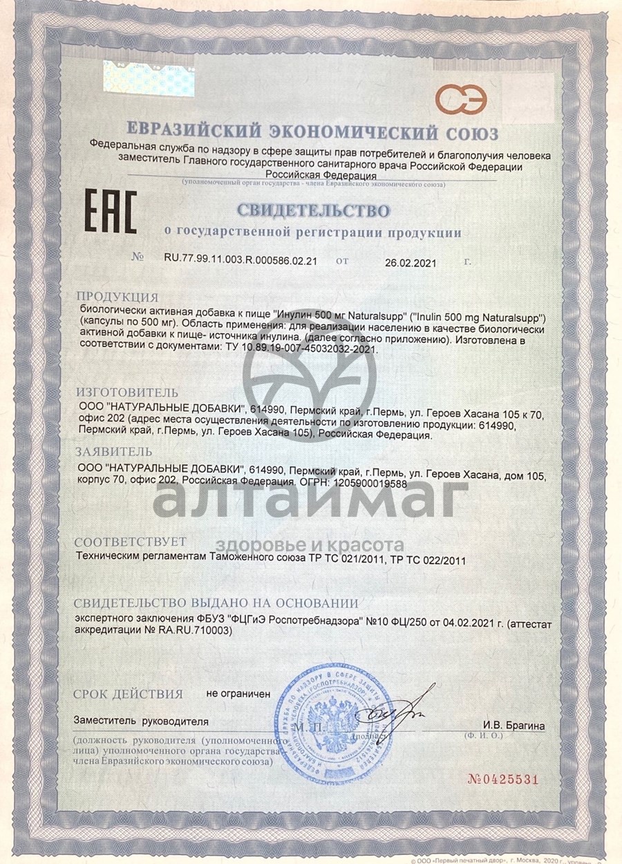 - Купите Инулин 500мг Naturalsupp №60 в Рязани по доступной цене 351 ₽ с доставкой на дом или заберите Ваш заказ в Рязани из ближайшего пункта выдачи, сделав заказ на AltaiMag.ru.