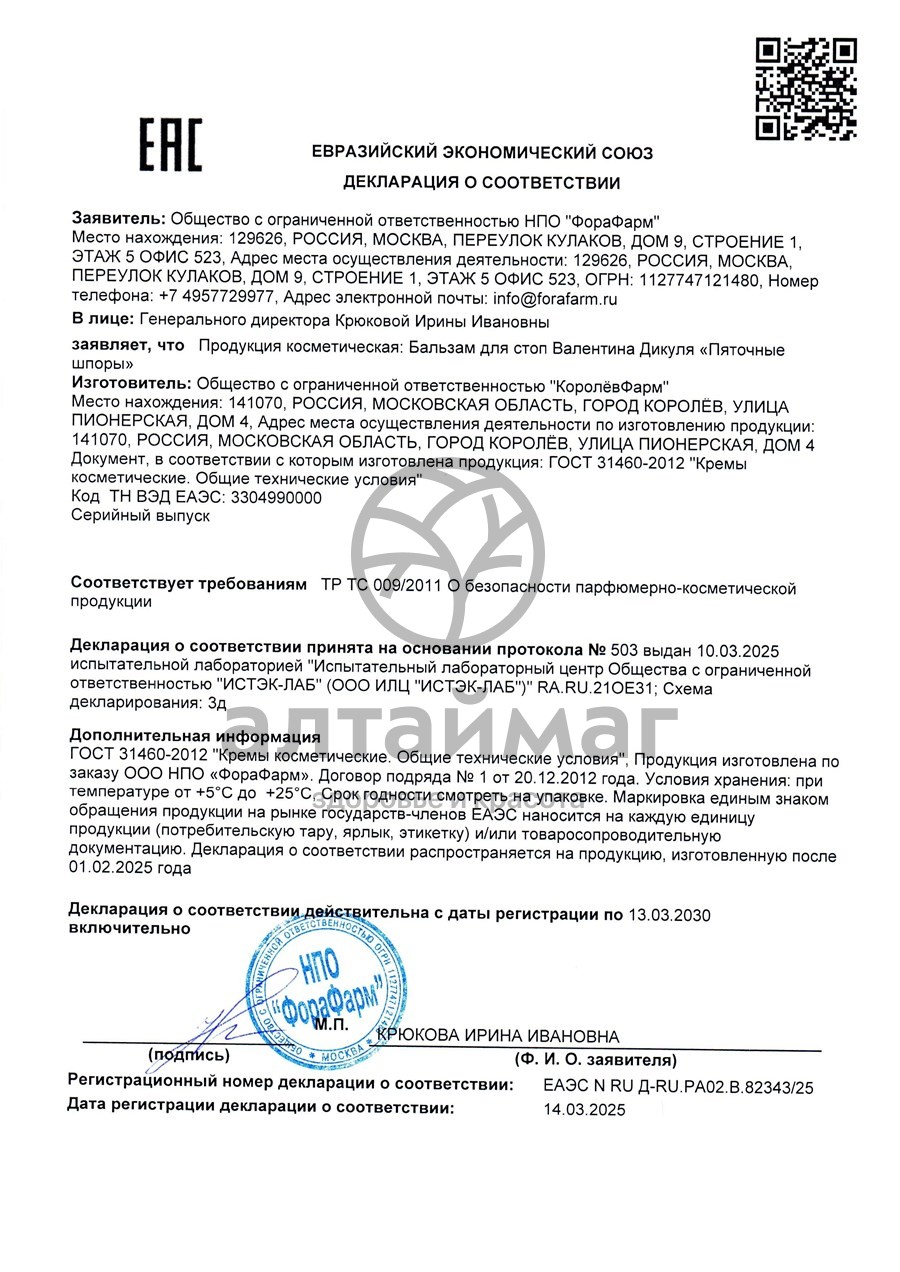 Есть вопросы по товару "Бальзам для стоп Валентина Дикуля Пяточные шпоры 100мл"?